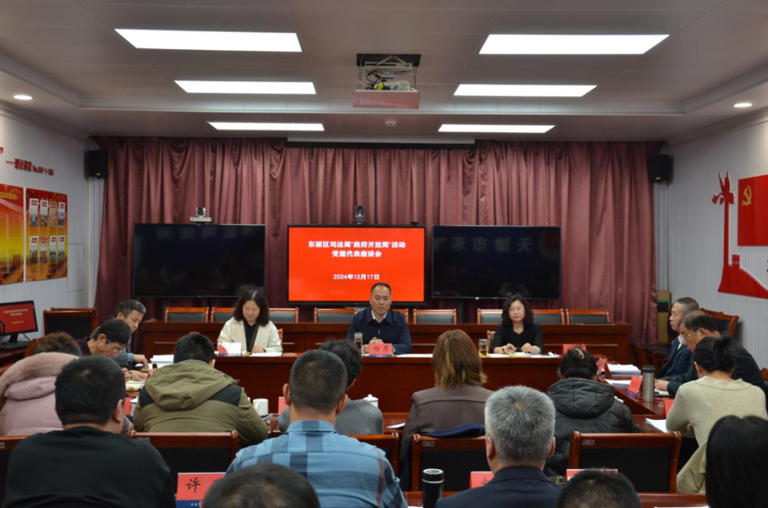 活动期间,各位受邀代表列席局长办公会并参加座谈会。会上,局主要负责同志详细介绍了司法局的机构设置、职能职责及全区司法行政工作情况。相关科室负责人围绕2024年度人民调解、法治宣传、行政复议等重点工作开展情况及特色亮点工作进行了专题汇报。各位受邀代表充分肯定了区司法局2024年以来各项工作取得的成效和成绩,围绕如何深入推进矛盾纠纷化解及推动全区法治建设进行了深入交流,并提出意见建议。代表们纷纷表示,此次“政府开放周”活动,既让大家深入了解了区司法局在矛盾纠纷化解和法治建设方面所做的工作,也搭建起人民群众积极参与、主动监督政府的工作平台,今后将充分发挥好桥梁纽带作用,广泛宣传司法行政领域的好经验、好做法,共同努力提升全民法治意识。